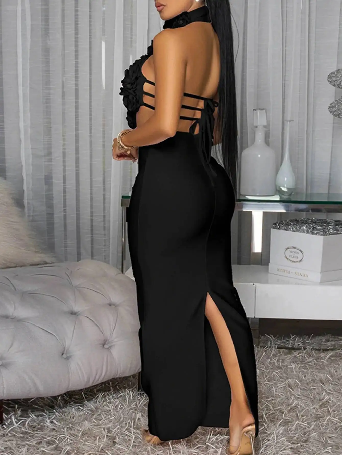 Sexy backless maxi black summer dress women elegant wedding party long dresses 2025 woman flower birthday evening dress vestidos
